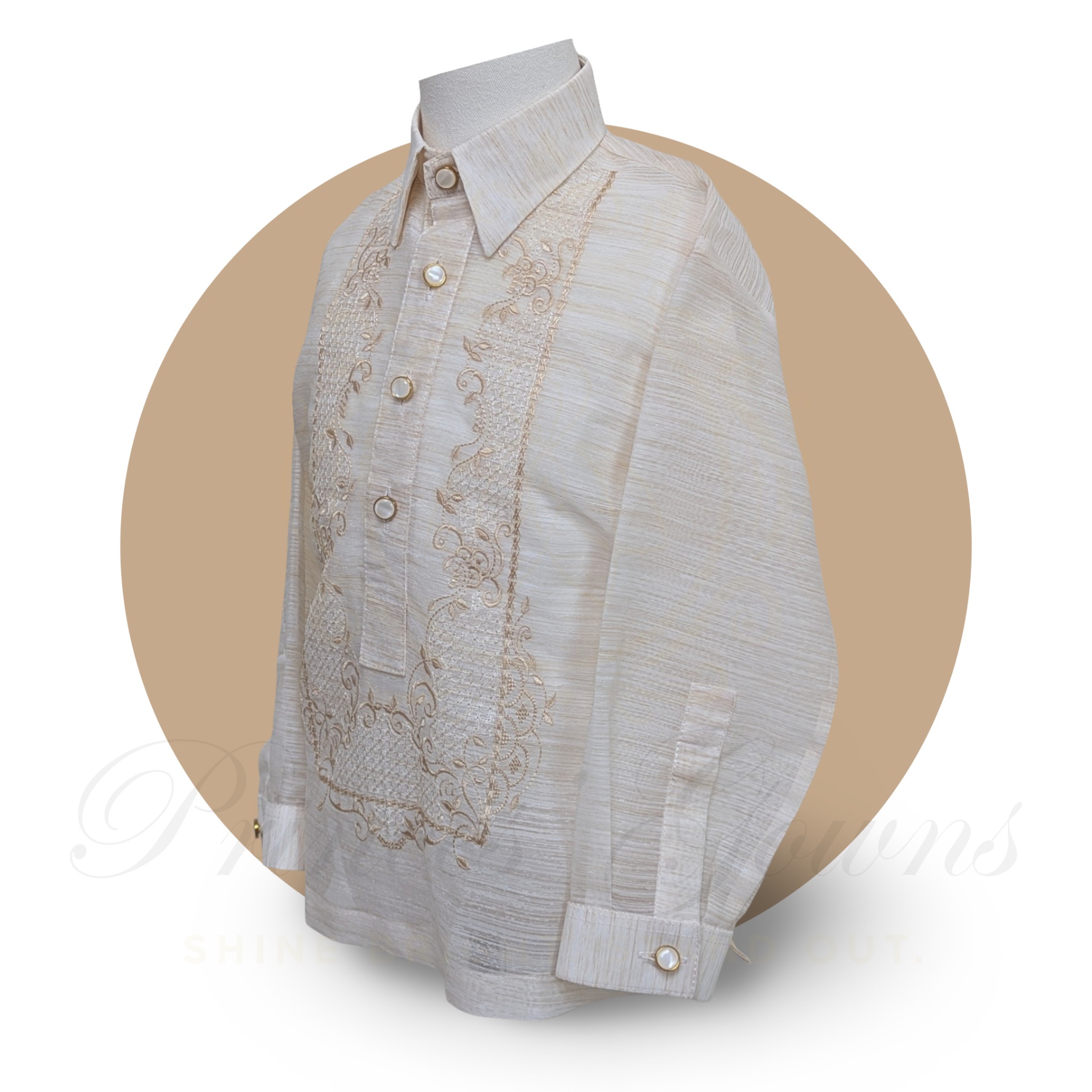 This traditional Barong Tagalog is perfect for cultural events, weddings, school programs, and formal occasions.